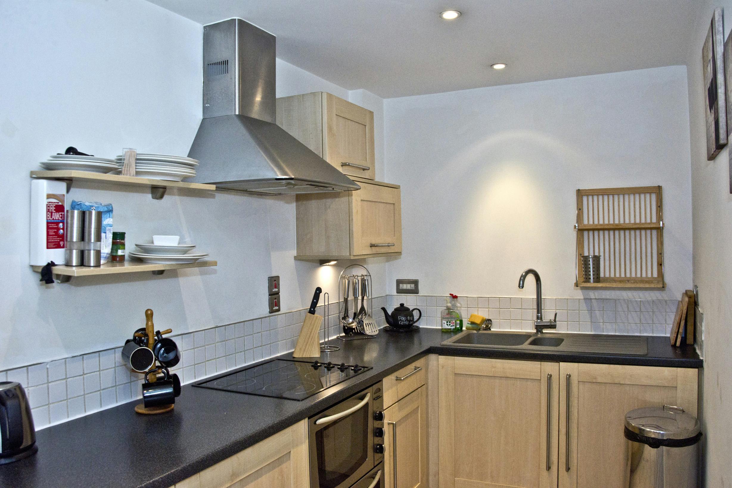 A one bedroom apartment with fully fitted kitchen and bathroom with overhead shower with two double beds and two soaf beds that sleeps up to 6 guests.